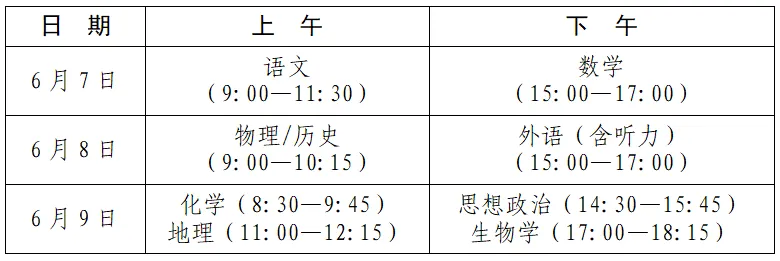 语文考试时长为150分钟,数学和外语(含听力)考试时长为120分钟。